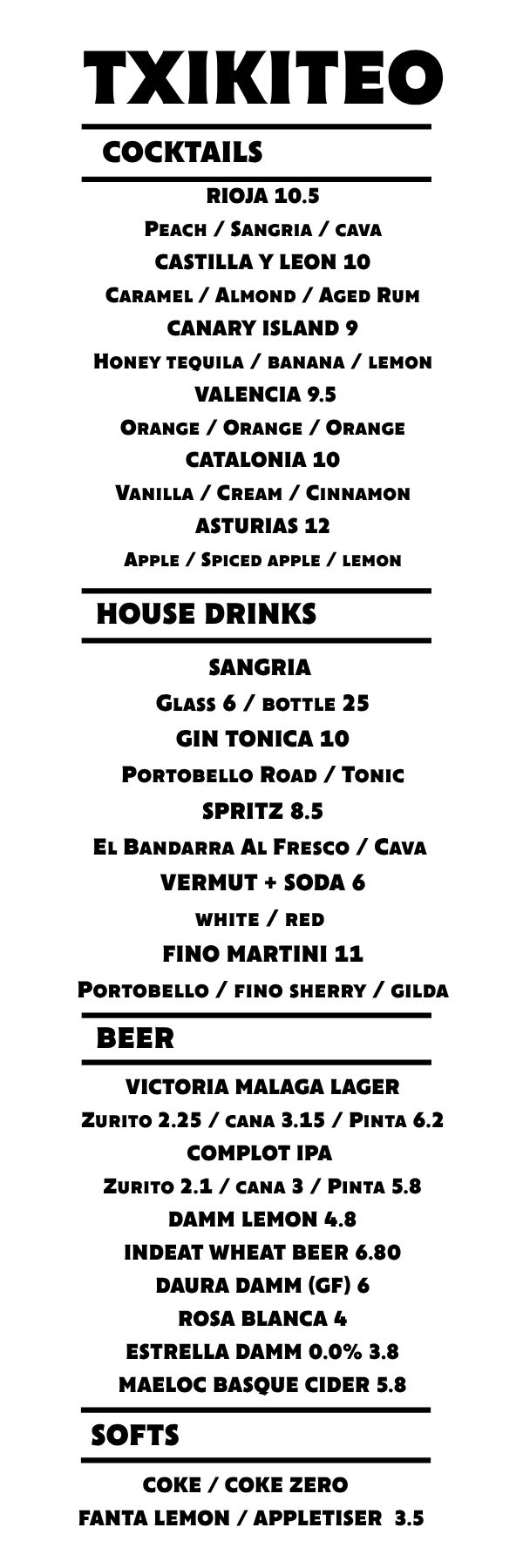 Our wine list explore regions all over Spain, from Valencia to the Canaries, giving you a perfect accompaniment to your meal. Not hungry? Why not just pop in to enjoy a bottle of your favourite Spanish wine, a cocktail from our specially curated list or a beautifully crisp pint of Estrella Damm.